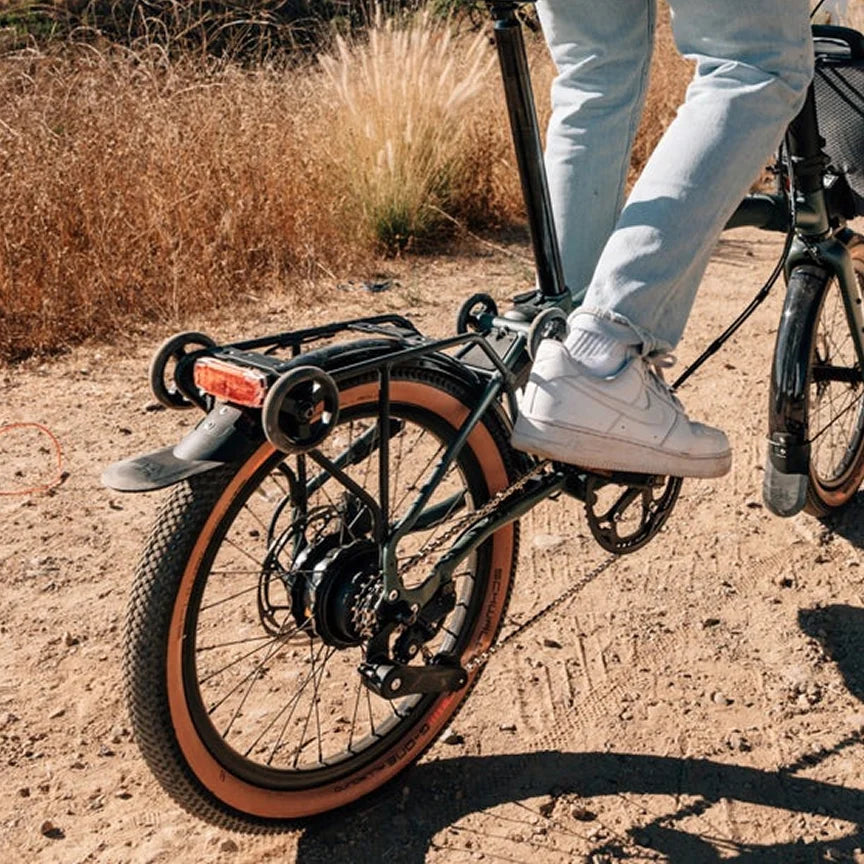 Brompton's all-new compact electric system, engineered from the ground up in the UK. Featuring a robust rear motor and a cutting-edge battery, rigorously tested for unmatched reliability and safety. Stay ahead with over-the-air updates and seamless integration with our bike app for your smartphone—designed to elevate your ride to new heights.